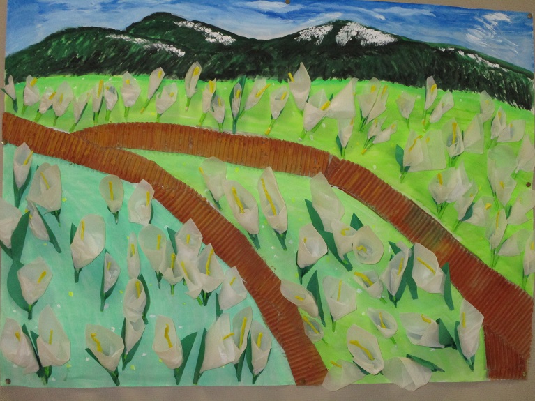 花紙でいろんな色のお花をたっくさん作り…重ねて…