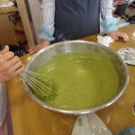 大きなボウルで生地を混ぜるのは体力勝負!!